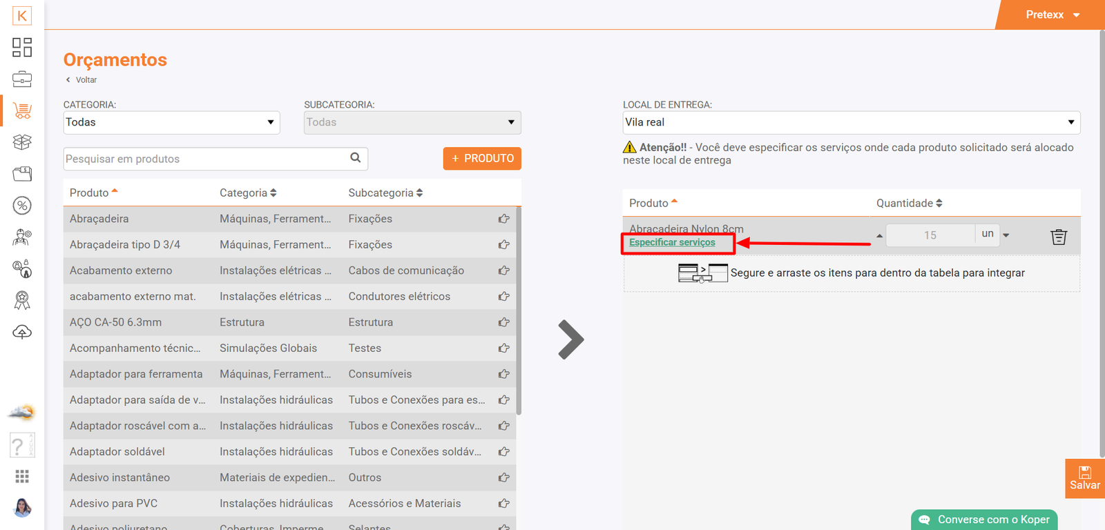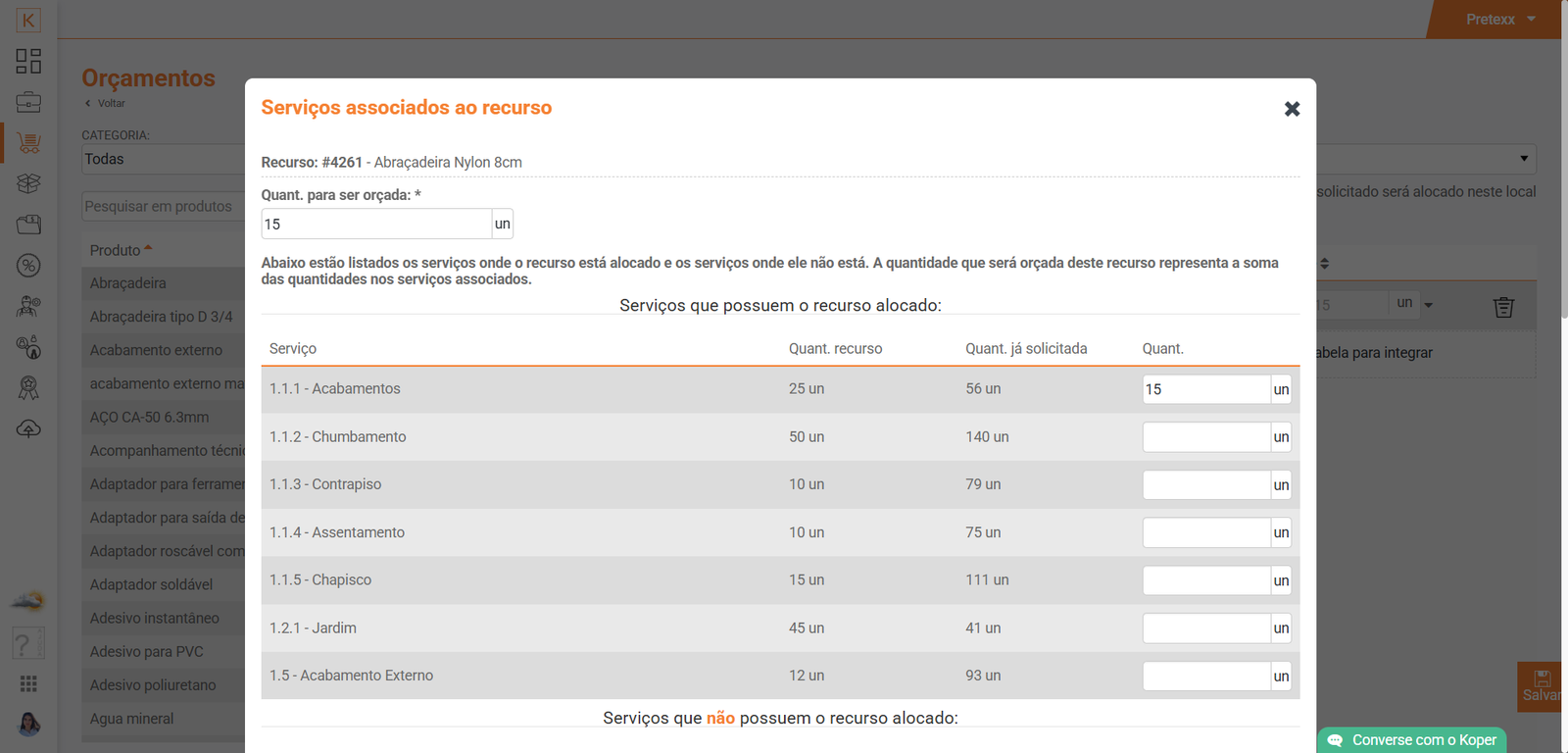 Por padrão o Koper irá vincular ao orçamento os fornecedores que no cadastro, oferecem este tipo de produto.