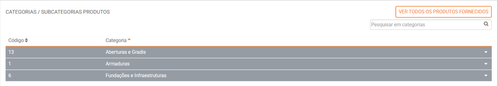 - lá você verá todos os insumos e categorias de produtos. Assim como tbm poderá visualizar todos os produtos fornecidos clicando em