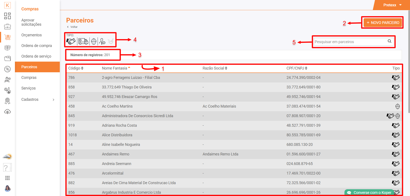 Registre os Parceiros da sua empresa, como Fornecedores de produtos, Prestadores de serviços, Transportadoras ou Imobiliárias para vinculá-los aos orçamentos de compra, ordens de compra, financeiro, vendas, etc.