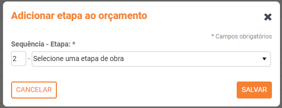 ATENÇÃO: O nome da etapa será alterado para todos os orçamentos de obra onde a etapa está incluída." - Se fizer alteração da sequência ela irá alterar a posição em que esta etapa está em seu orçamento.