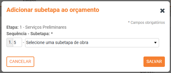 - Na aba de ITENS DO ORÇAMENTO identifique a etapa a qual deseja adicionar uma subetapa e clique em