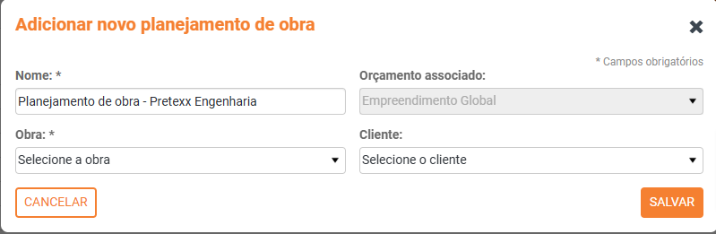 Depois de gerar o Orçamento ainda é possível gerar o Planejamento de obra