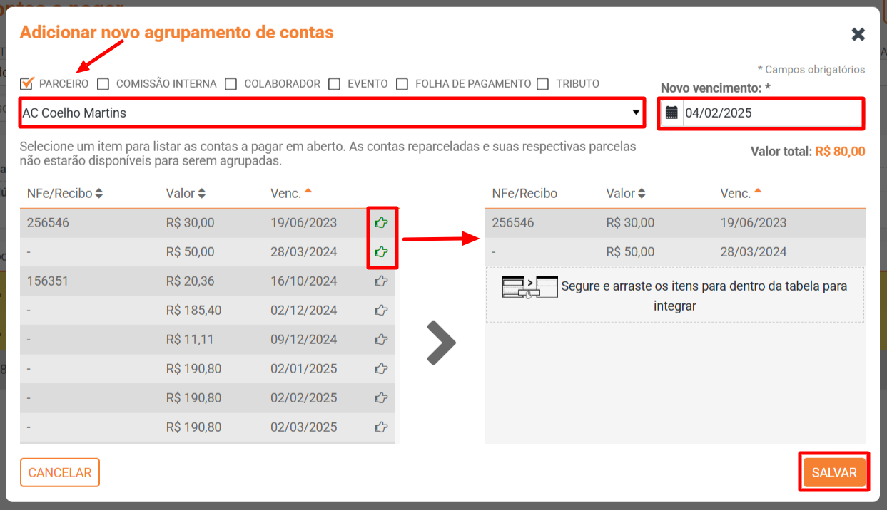 COMO AGRUPAR DUAS OU MAIS CONTAS A PAGAR