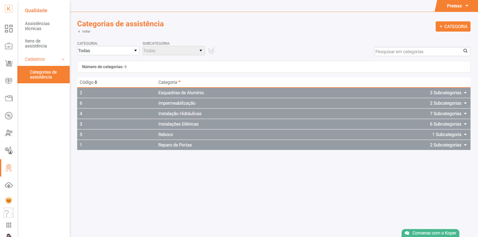 Aqui será onde irá definir as categorias e subcategorias das quais os itens citados anterioomente, estarão inseridos, para que posteriormente gere suas assistências técnicas.