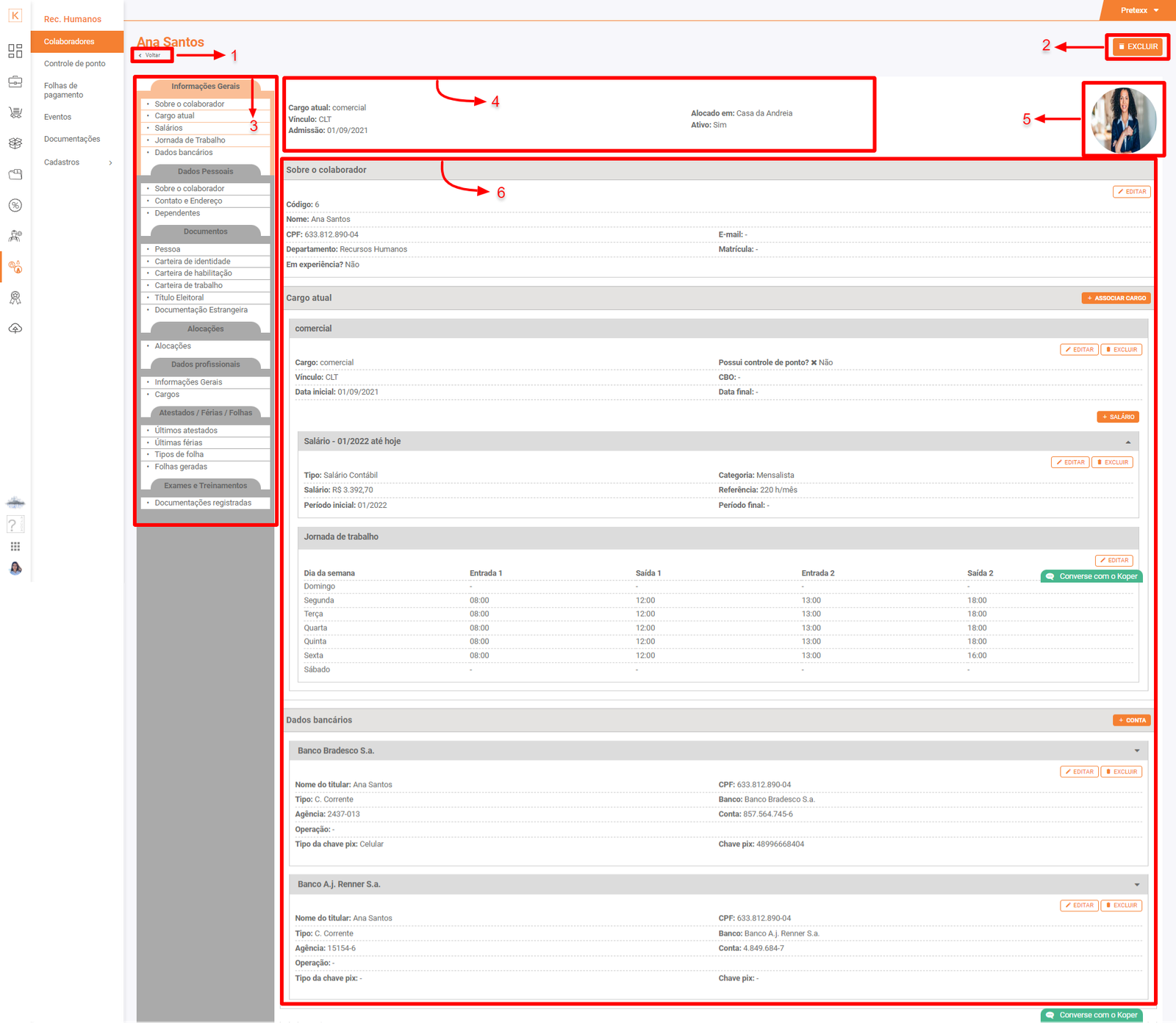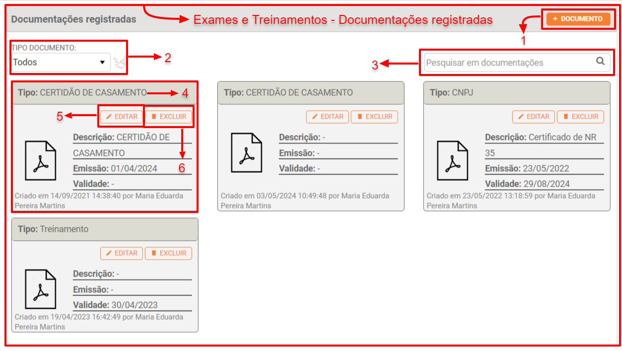 - Você também pode excluir o registro de documentos do colaborador em Documentações.