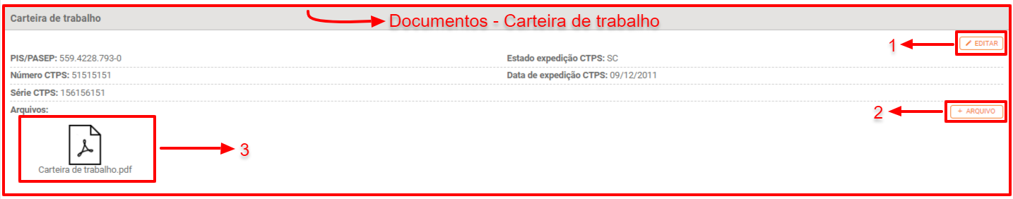 - Você também pode editar o registro de documentos do colaborador em Documentações.