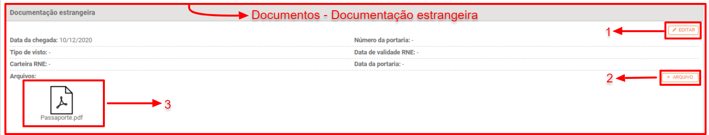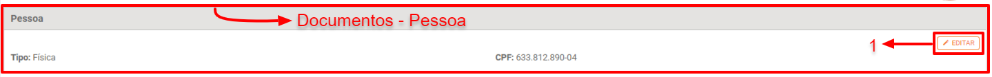 - No painel Documentações registradas, identifique o registro do documento que deseja editar e clique no botão