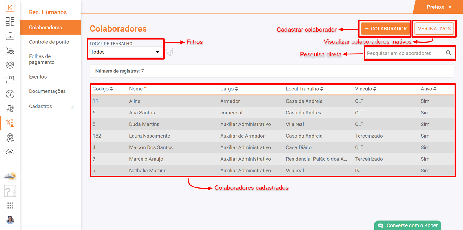 Depois de registrados, você pode realizar Controle de ponto, lançar Folhas de pagamento que serão enviadas automaticamente para seu Contas a pagar.