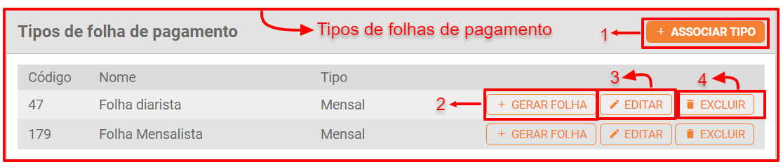 - Esta mesma ação pode ser feita em Cadastros > Configurações > Tipos de folhas de pagamento