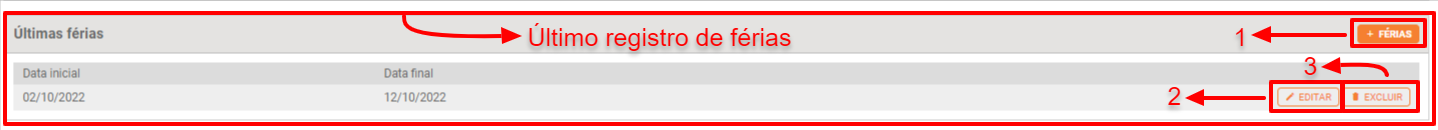- No painel Últimas férias identifique o registro que deseja excluir e clique no botão