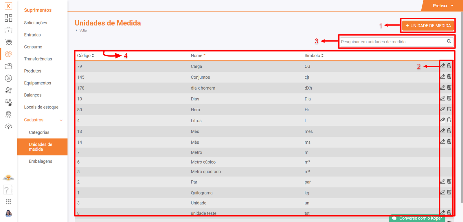 Acesse Koper > Suprimentos > Cadastro: Unidades de medida