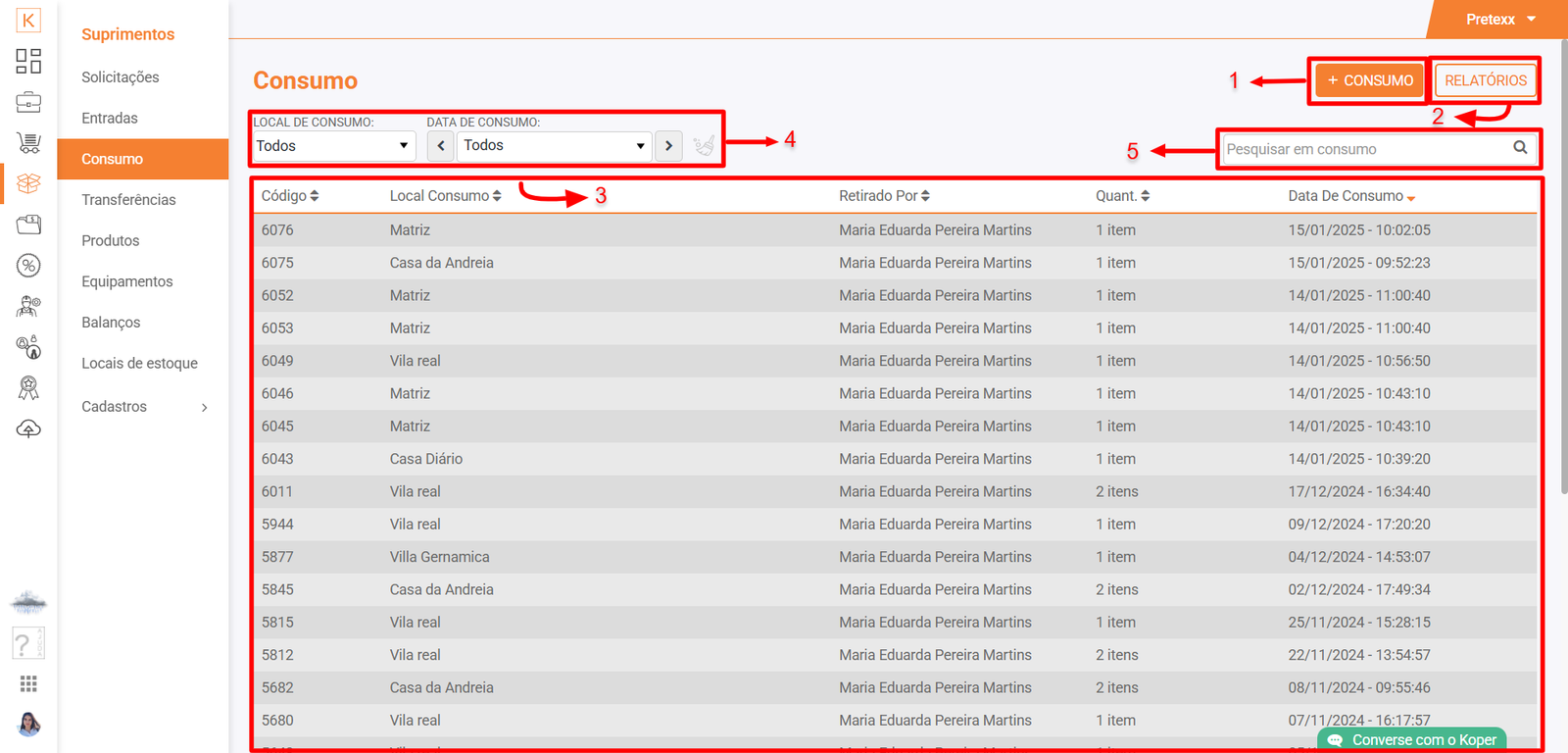 Aqui é onde será registrada toda saída de produtos do estoque para o consumo, assim é possível manter maior controle sobre seu estoque.