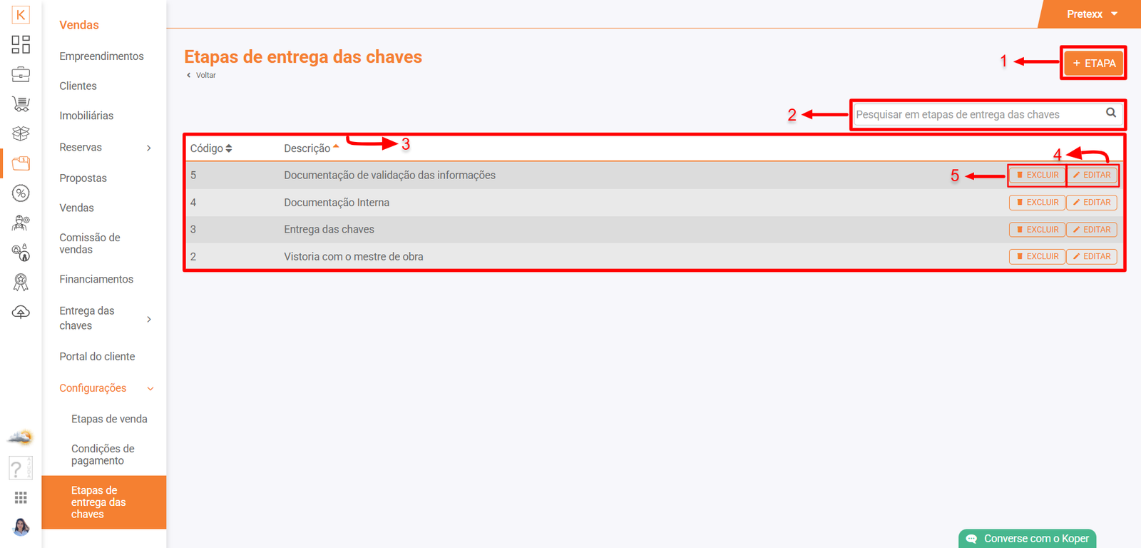 VISÃO GERAL DO MÓDULO VENDAS - CONFIGURAÇÕES: ETAPAS DE ENTREGA DAS CHAVES