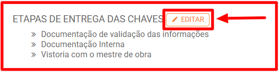 - Identifique o empreendimento que deseja associar etapas de entrega das chaves e clique em