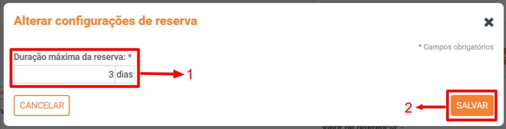 ; - Defina Duração máxima de uma reserva para este empreendimento;