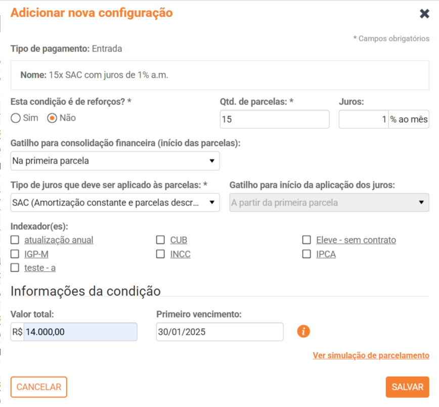 ; - Selecione o empreendimento, o cliente e a unidade de interesse;